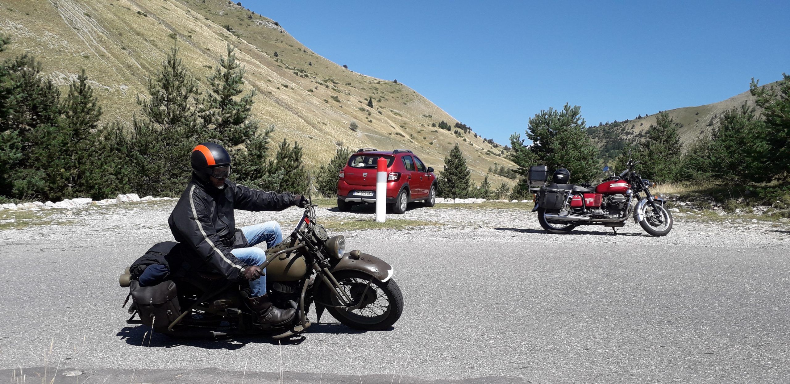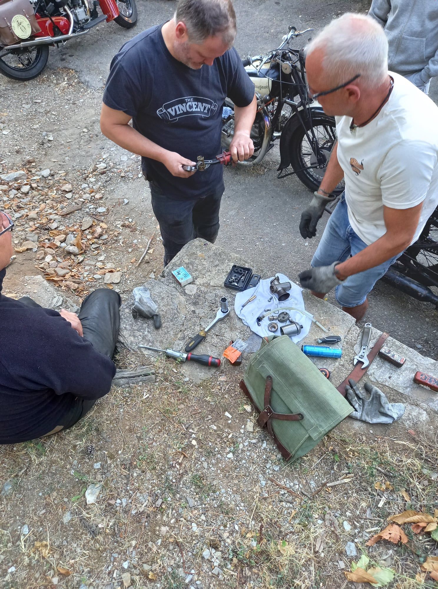 Cette fois c’est l’attelage S5C Superculasse avec sidecar Imperial T35 qui sera le plus ancien, pour cette rencontre improvisée.