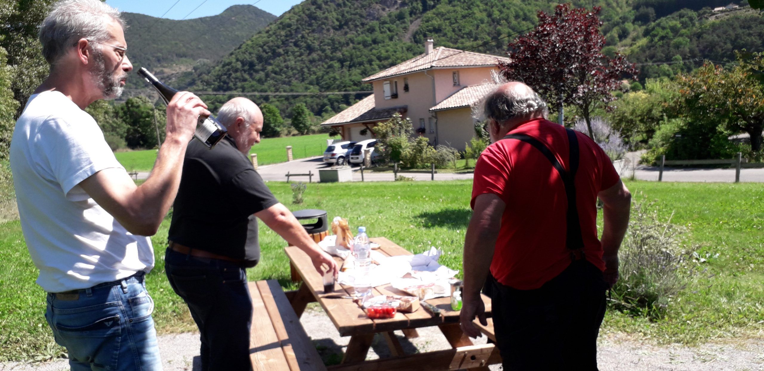 En ce dimanche 13 juin, les contraintes dues aux précautions pour lutter contre la transmission du virus ont été en partie levées ou assouplies. la Taverne Villageoise a pu réouvrir, quelques uns se sont déplacés, tous individuellement et se sont retrouvés en ce second dimanche du mois, ensoleillé à souhait. Un moment fort agréable.